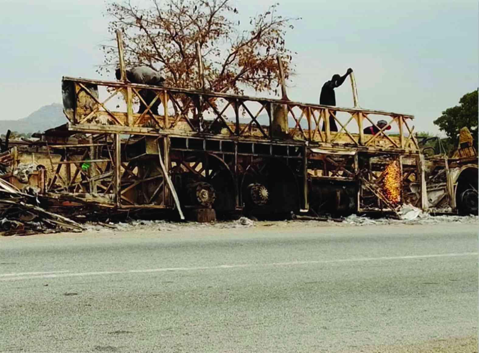 “I saw a cloud of smoke, only to realise that the bus was on fire,” recalled a villager, Ferlon Sigauke.