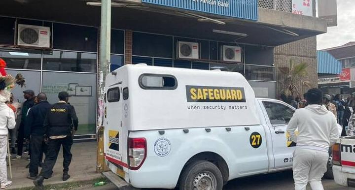 However, witnesses said the robbers, who were armed with pistols and assault rifles, waylaid the security guards and fired shots before seizing the cash trunks, loading them into the back of a Ford Ranger single-cab vehicle and fleeing.